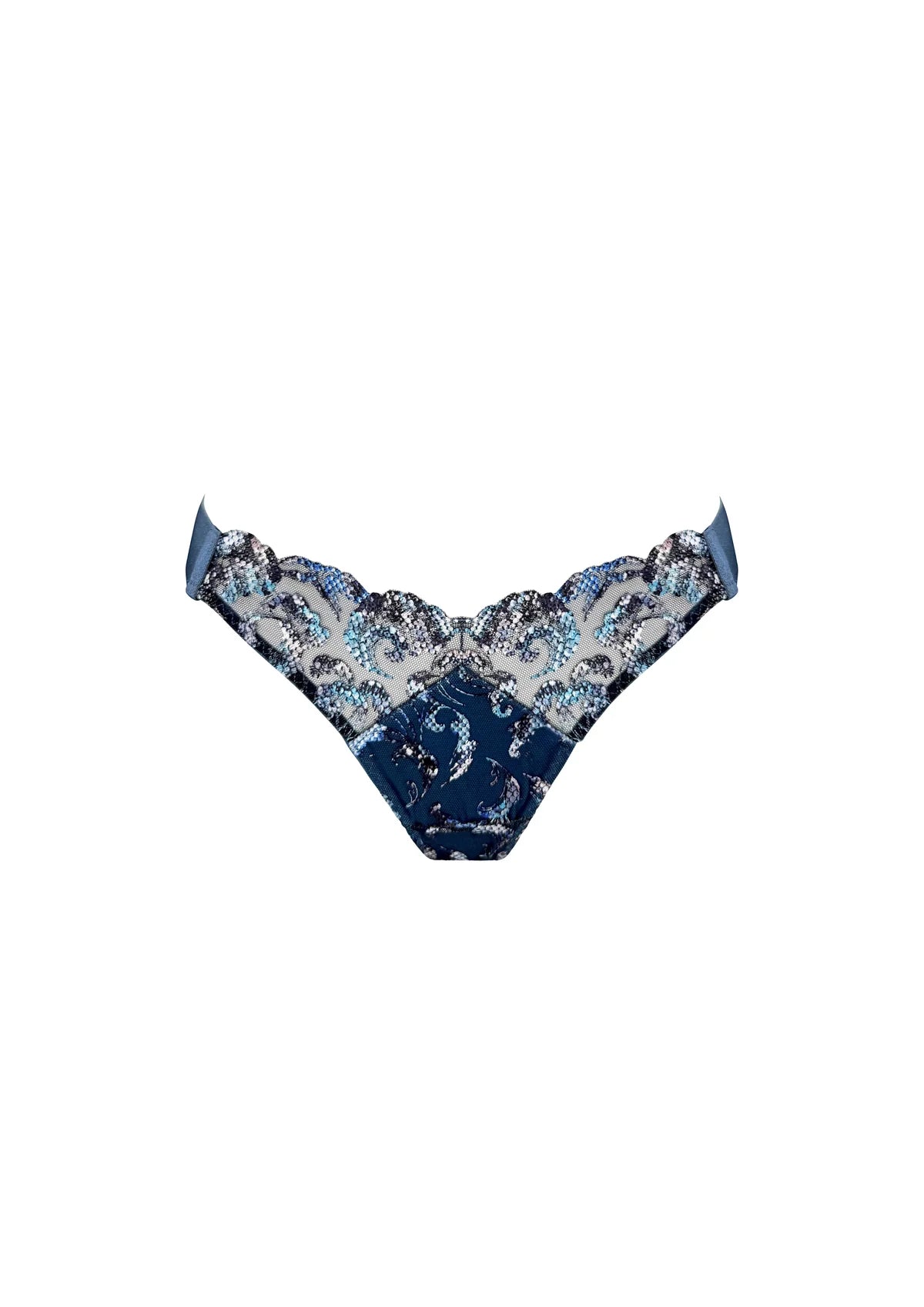 This embroidered tulle thong is an elevated lingerie essential, balancing refined detail with everyday wearability. The bespoke lace forms a flattering ‘V’ shape at the front, while soft wide-band elastic strapping provides a secure, comfortable fit.